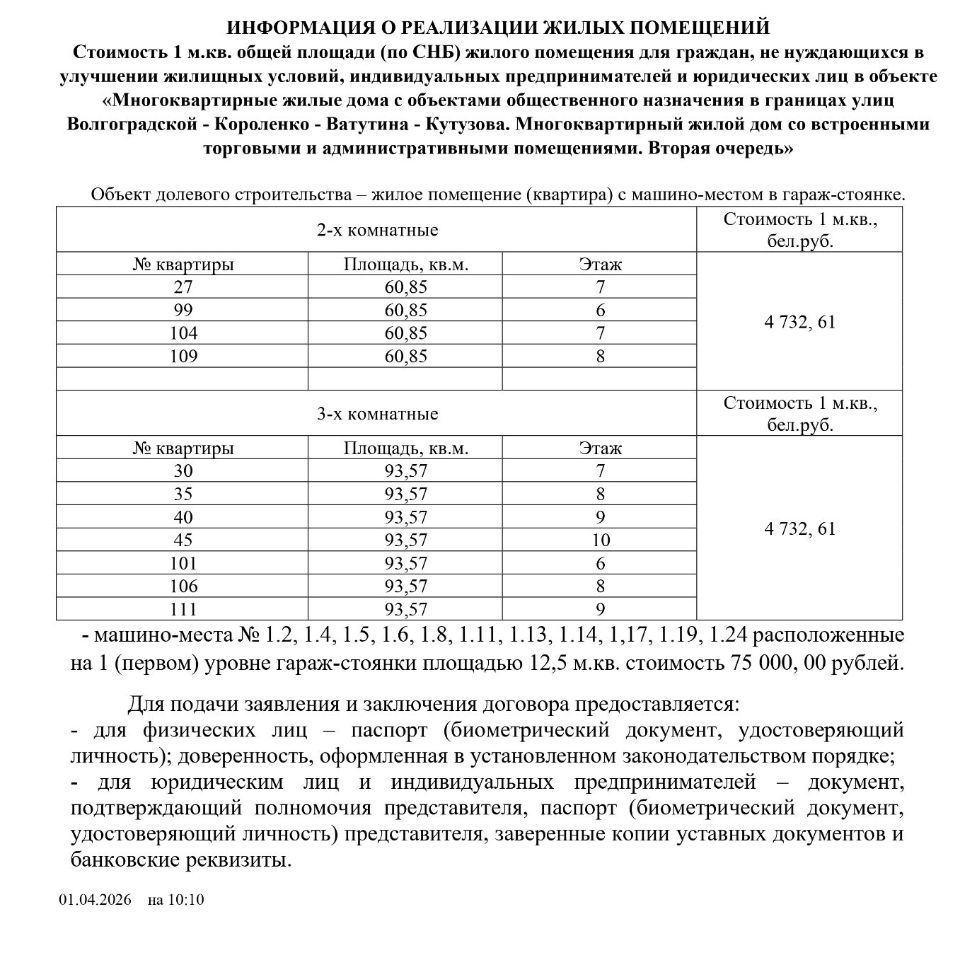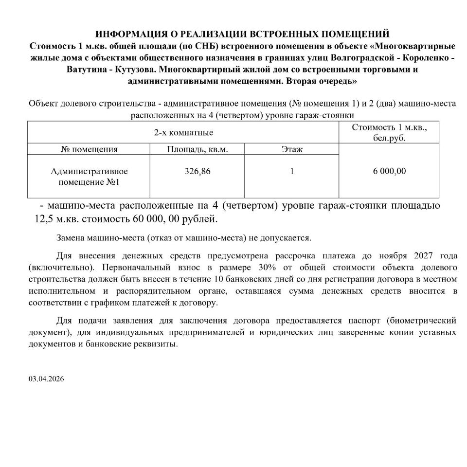 Объект расположен в границах улиц Волгоградской, – Короленко, – Ватутина и Кутузова в г. Минске и включает в себя возведение многоквартирного дома и многоуровневого наземного отдельно стоящего гаража-стоянки открытого типа.